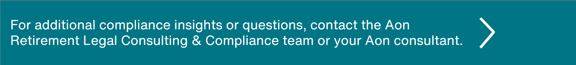 Aon’s 2026 Compliance Calendar provides plan sponsors with a comprehensive overview of key compensation and benefit compliance dates for retirement and health and welfare plans, focusing on calendar year administration. The Calendar highlights critical regulatory deadlines, including those impacted by SECURE 2.0, and offers detailed guidance to help sponsors stay compliant with federal requirements. For additional compliance insights or questions, contact the Aon Retirement Legal Consulting & Compliance team or your Aon consultant.